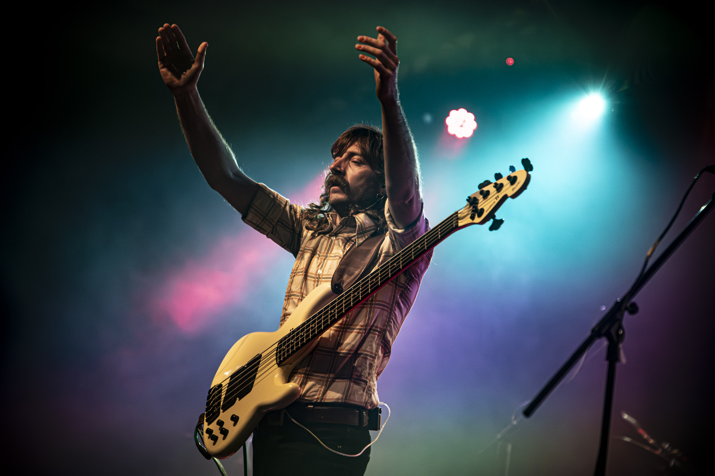 Ma cosa aveva Matteo nello zaino? Beh, ha stampato un grande foglio con un attempato Derek Smalls che, basso in mano, grida compiaciuto “I am proud of you Son!” a Oliver Sentance, che lo raccoglie da sotto palco e lo alza al cielo come farebbe una ring girl, mostrandolo a Harry e Heath e al pubblico intero: anche stavolta il rito di This is Spinal Tap si è compiuto, arrivando a “11” e oltre!