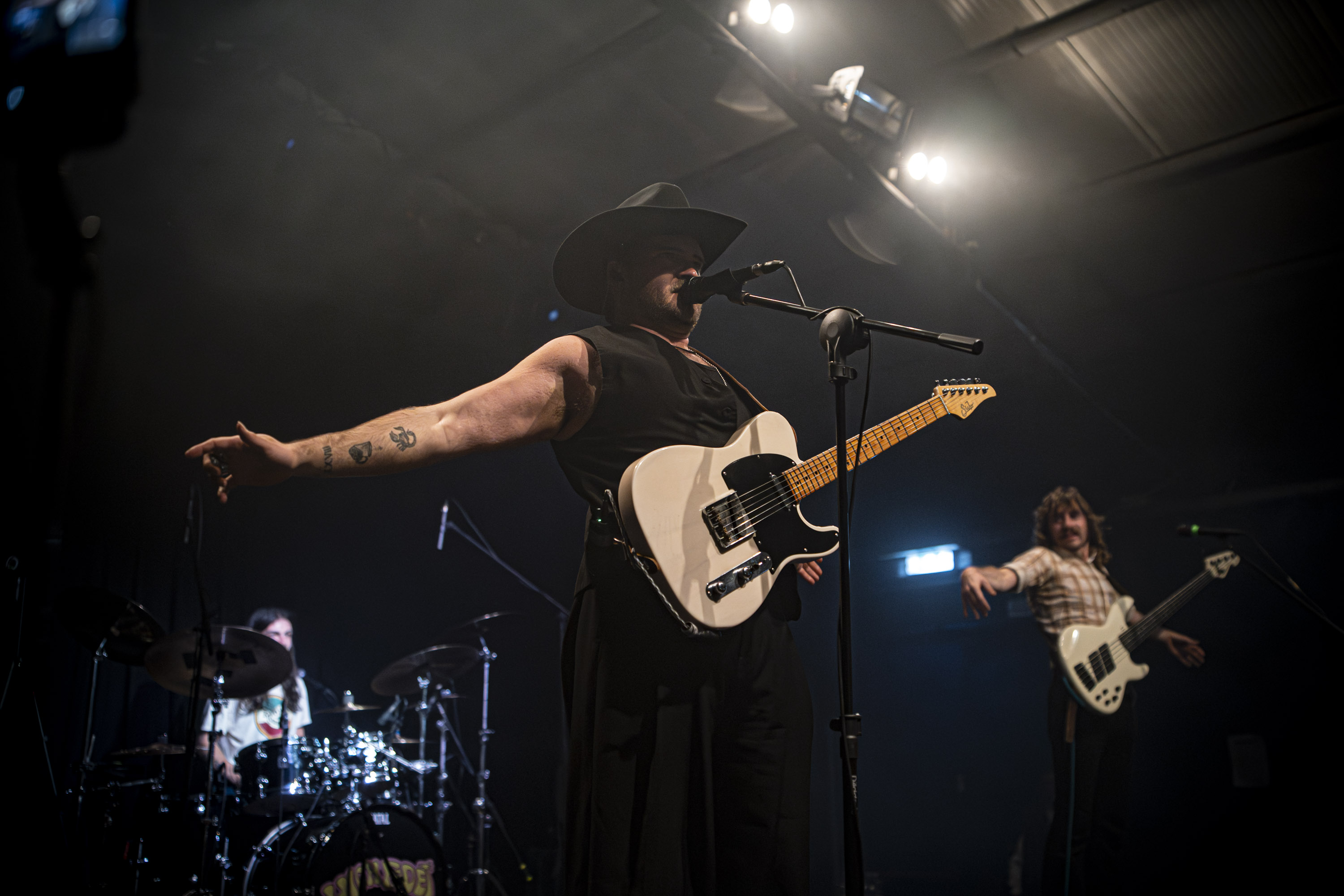 Valentino con quelle braccia da docker camallontico genovese, fast&sfuria sul manico delle sue chitarre a velocità supersonica, ruggisce con la sua voce a tratti come James Heatfield degli anni migliori. Oliver Sentance ipnotizza tutti con quei baffoni alla Obelix ed è una bass machine che scuote anche il bulbo capillifero, il manico del suo basso non conosce zone d’ombra deliziando i palati più funky come quelli dalle preferenze più hard. Heath Campbell è il nuovo batterista della band al posto di Calvin Davidson (che piaceva molto per approccio istintivo): è apparso più completo, con tante variazioni di ritmica e sfumature anche a limite del jazz, sfoderando quindi un repertorio di tocco e di tempi ad ampio spettro, forse meno muscolare rispetto al predecessore ma estremamente raffinato.