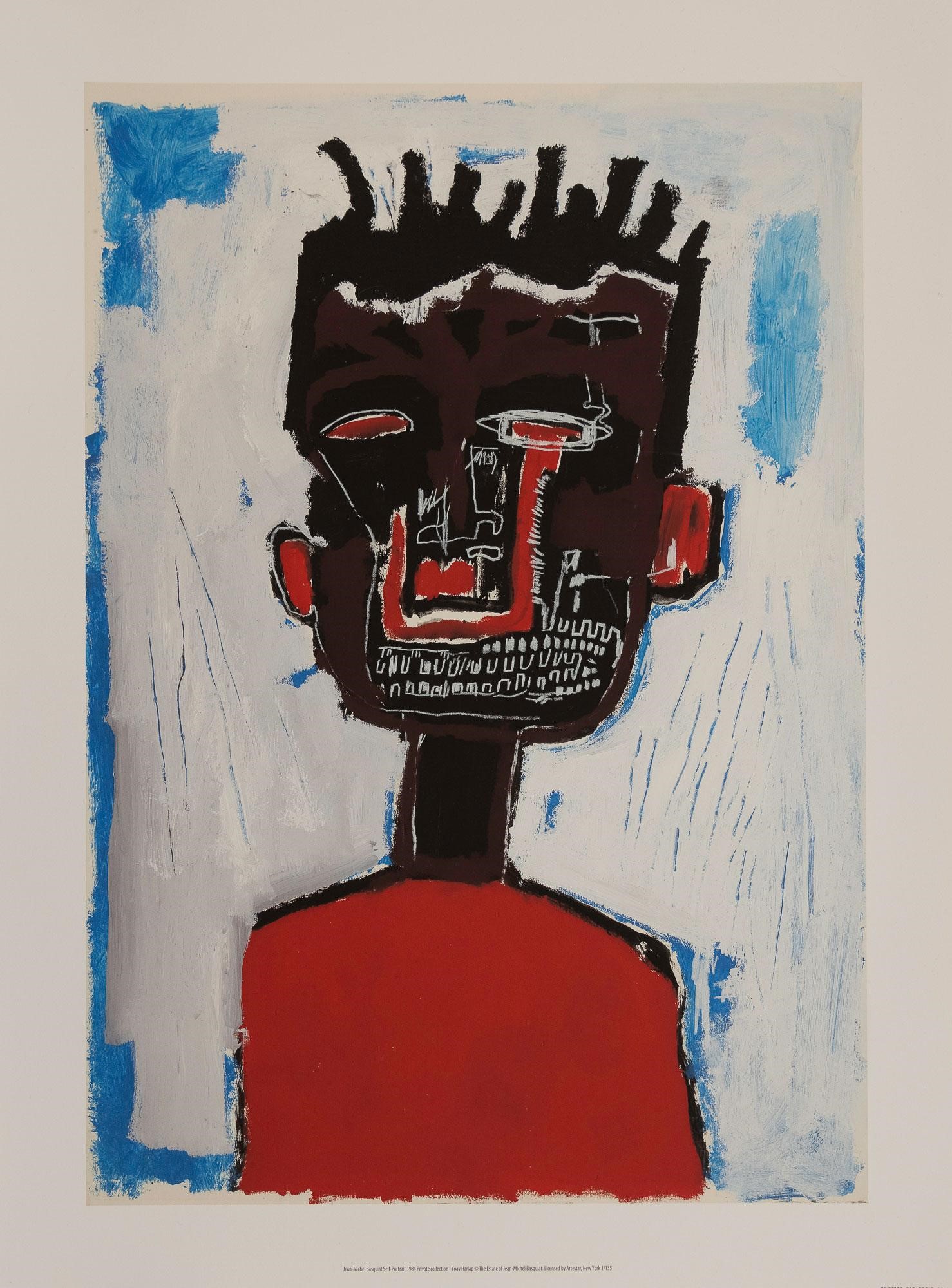 Allo stesso modo, i colori accesi, ma allo stesso tempo piatti e privi di vita di “Identity” di Jean-Michel Basquiat restituiscono lo stesso senso di solitudine e ineluttabilità, convogliati dal pennello nelle forme spigolose e nell’espressione vuota del soggetto ritratto.