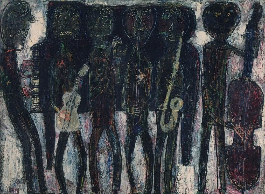Rischia di andare in burnout neuronale anche chi si trova ad osservare “Jazz Band” del pittore Jean Dubuffet, il quale ricrea lo stesso senso di confusione grazie ai bianchi e neri netti applicati alle forme primitive del gruppo di musicisti ritratti e all’ inusuale tecnica pittorica fatta di macchie, sporcature, incisioni e passaggi di gomma.