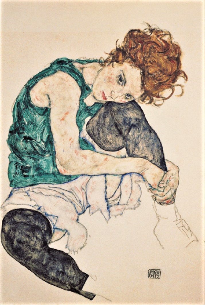 Il brano restituisce la stessa malinconia del dipinto “Donna seduta con ginocchio piegato” dell’artista espressionista Egon Schiele, in cui i colori tenui dell’acquerello contrastano con i contorni decisi tratteggiati dalla matita nera e lo sguardo accusatorio, fisso negli occhi di chi guarda, della donna ritratta.