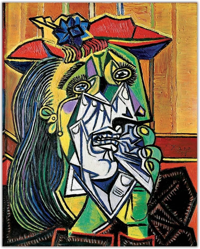 È la perfetta colonna sonora per la “Donna Piangente” di Pablo Picasso, in cui la disperazione della figura è incisa sul suo volto da colori acidi e linee rigide e violente, mentre gli occhi e la fronte della donna vengono dislocati e letteralmente spezzati in due dal dolore.