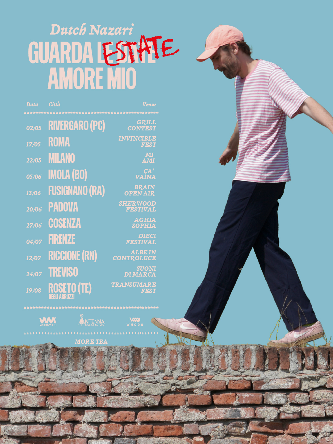 Il tour GUARDA L’ESTATE AMORE MIO rappresenta così un nuovo capitolo di Guarda le luci amore mio, un disco che continua a evolversi concerto dopo concerto, rafforzando il legame tra Dutch Nazari e il pubblico che lo segue ormai da anni e confermando il suo ruolo come una delle voci più riconoscibili e letterarie della scena italiana attuale.