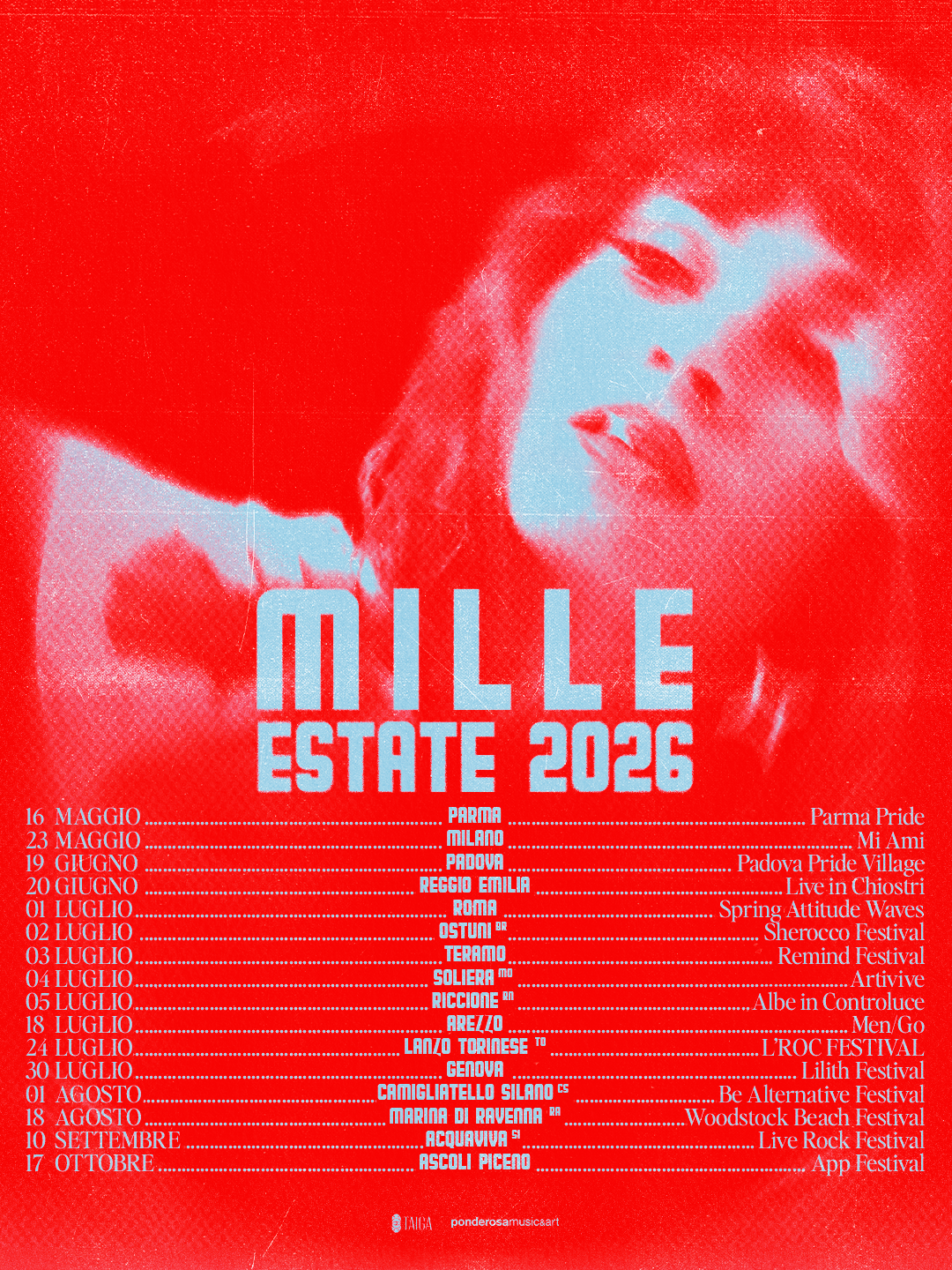 Dopo il successo del tour autunnale, che ha registrato numerosi sold out, MILLE torna dal vivo quest’estate, portando la sua energia sui palchi dei principali festival del nostro paese.