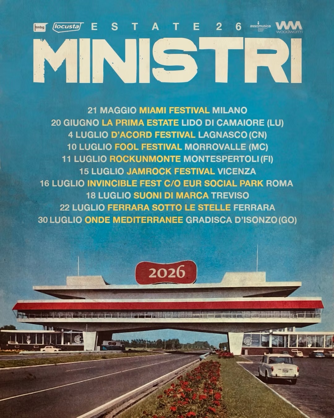 Dopo il grande successo del Provincia Popolare Tour, I Ministri annunciano le date per il tour per l'ESTATE 2026: una nuova serie di date che accompagnerà il pubblico nei mesi estivi, portando l’energia del disco sui palchi all’aperto e nei festival lungo tutta la penisola.