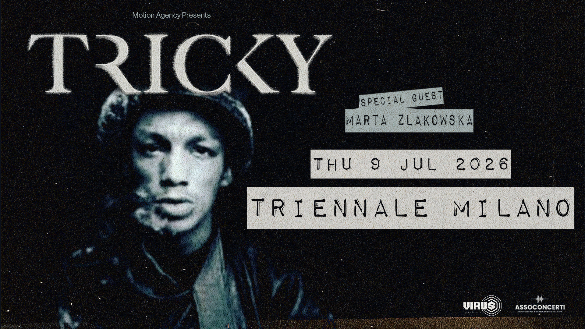 Chiude il programma, come da precedente annuncio, giovedì 9 luglio nel Giardino di Triennale l’unica data italiana del tour di Tricky, tra gli artisti più innovativi e influenti del panorama contemporaneo, che grazie al suo lavoro con i Massive Attack e alle collaborazioni con PJ Harvey e Björk, ha saputo conquistare l’ammirazione di pubblico e critica che ne hanno riconosciuto la visione unica e la creatività radicale. Un live inedito, intenso e immersivo, accompagnato dalla vocalist polacca Marta Z?akowska.