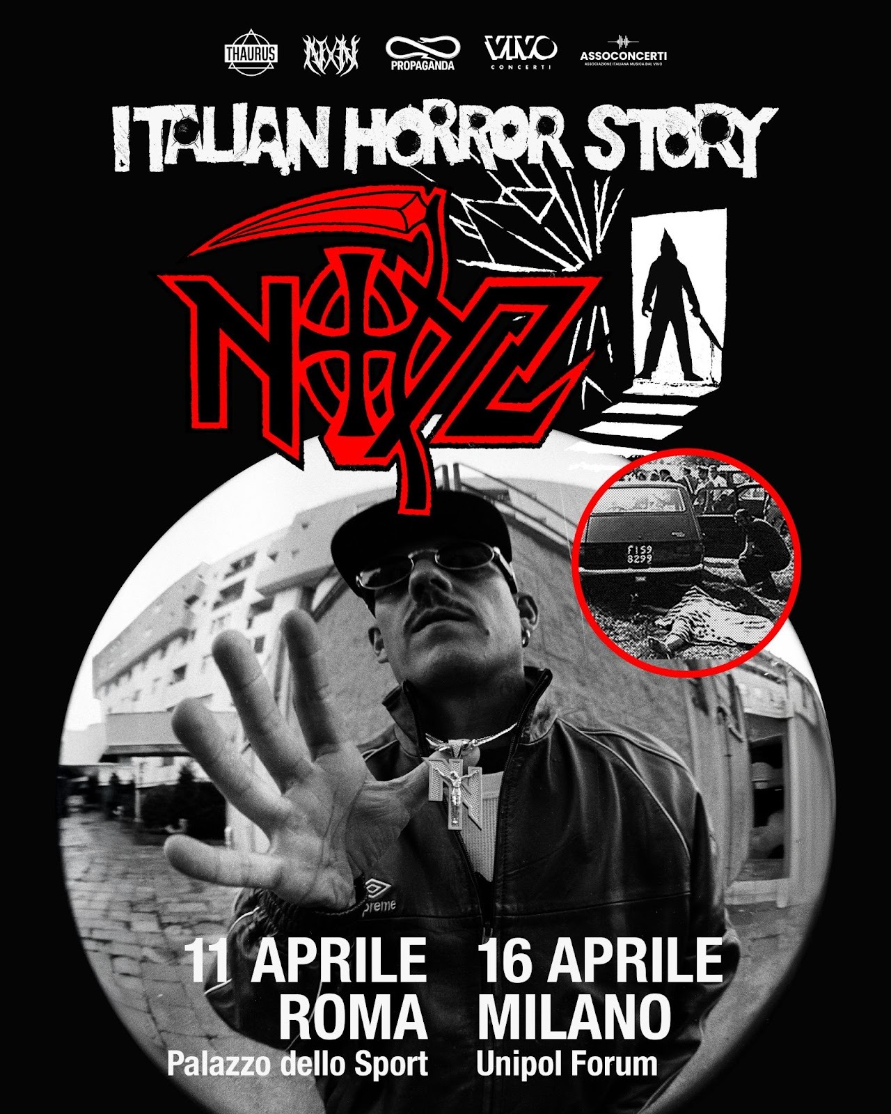 NOYZ NARCOS, uno dei maggiori esponenti di sempre della scena urban italiana, torna live con ITALIAN HORROR STORY 2026, due date imperdibili nei palazzetti di Roma e Milano: gli appuntamenti, prodotti da Vivo Concerti e Thaurus Live, sono previsti sabato 11 aprile 2026 al Palazzo dello Sport di Roma e giovedì 16 aprile 2026 all’Unipol Forum di Milano.