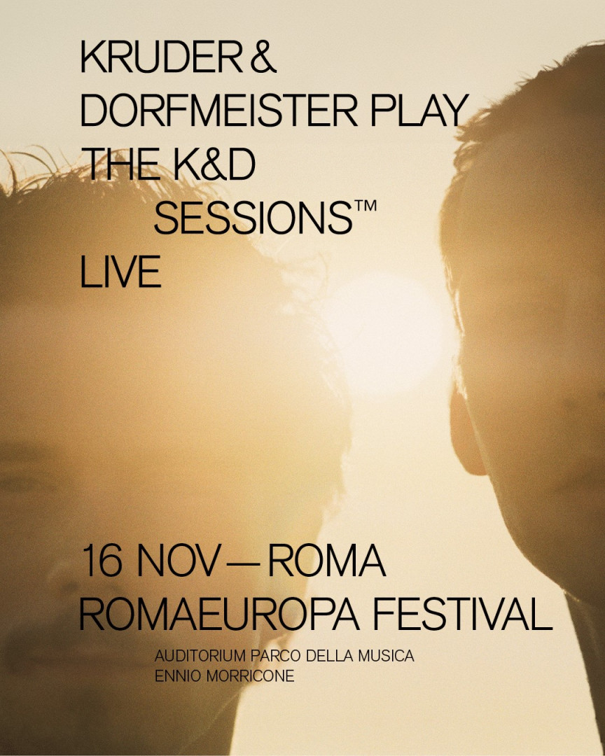 Il 16 novembre, arrivano a Roma, nella Sala Santa Cecilia dell’Auditorium Parco della Musica “Ennio Morricone” (grazie alla preziosa collaborazione con Accademia Nazionale di Santa Cecilia), Kruder & Dorfmeister con una nuova tappa del tour The K&D Sessions Live, celebrazione dei trent'anni di carriera del duo austriaco e di uno dei dischi culto dell’elettronica anni Novanta.