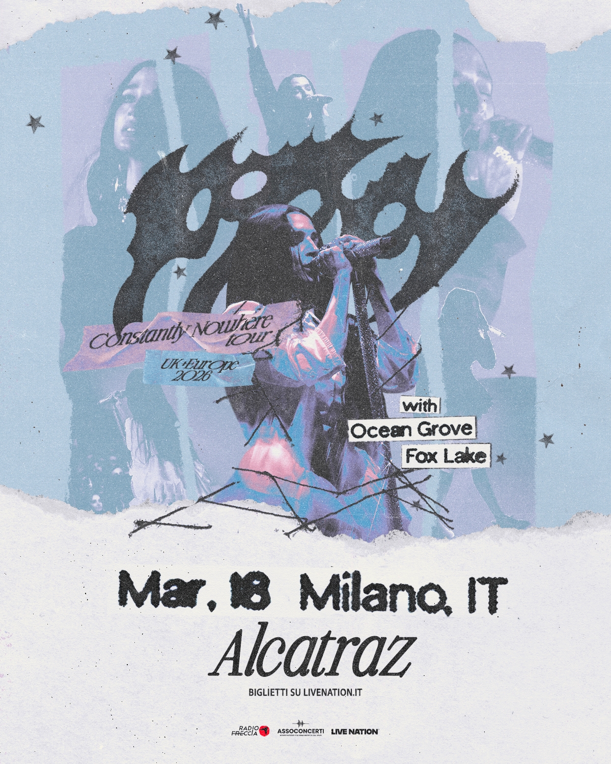 Dopo aver concluso il They’re All Around Us Tour, dedicato al suo acclamato album Negative Spaces, e aver condiviso il palco con i Linkin Park in alcune date del loro tour sudamericano, Poppy porta ora la sua musica in Australia e in Europa con il nuovo Constantly Nowhere Tour.