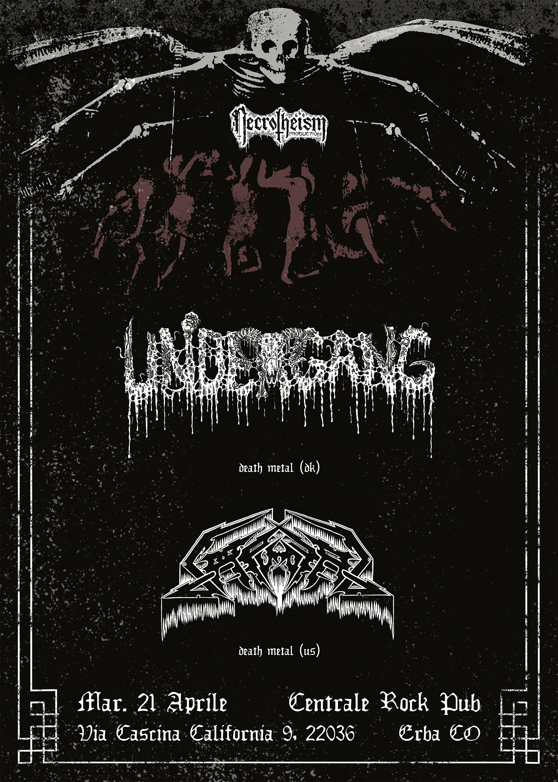 Necrotheism Prod. annuncia il ritorno in Italia dei danesi Undergang (Dark Descent Records), di nuovo nel nostro Paese dopo otto anni di assenza: un suono cavernoso, ruvido e gutturale, con una vena punk evidente, caratterizza questa band che negli anni ha guadagnato il rispetto degli ascoltatori più fedeli dell’underground di tutto il mondo.
