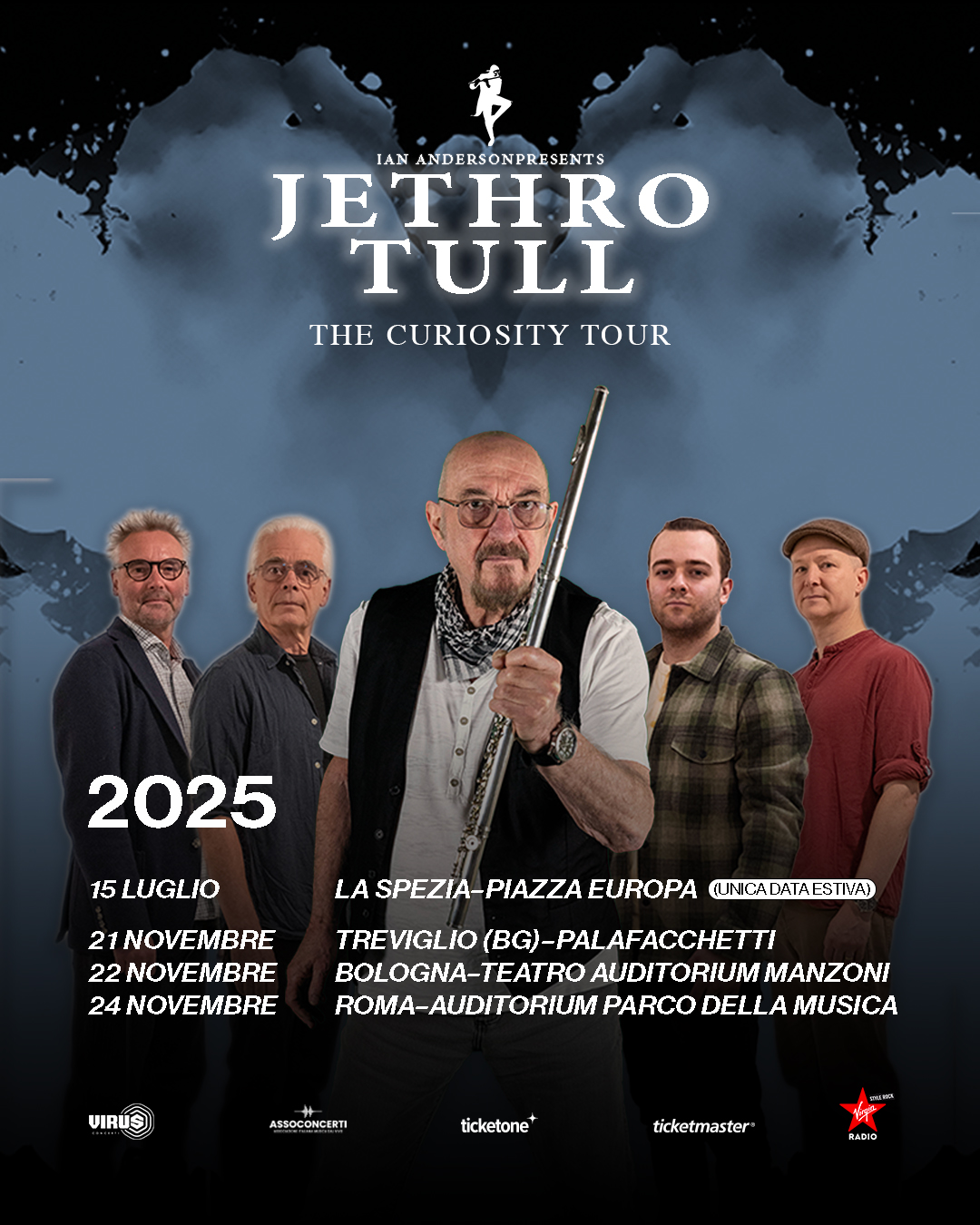 Dopo il successo del 7 Decades Tour, i Jethro Tull hanno pubblicato il nuovo album e sono pronti agli appuntamenti italiani autunnali del 2025: il 21 novembre al PalaFacchetti di Treviglio (BG), il 22 novembre al Teatro Auditorium Manzoni di Bologna e infine il 24 novembre all’Auditorium Parco della Musica di Roma. Sarà l’occasione per ascoltare dal vivo i brani del nuovo album Curious Ruminant.
