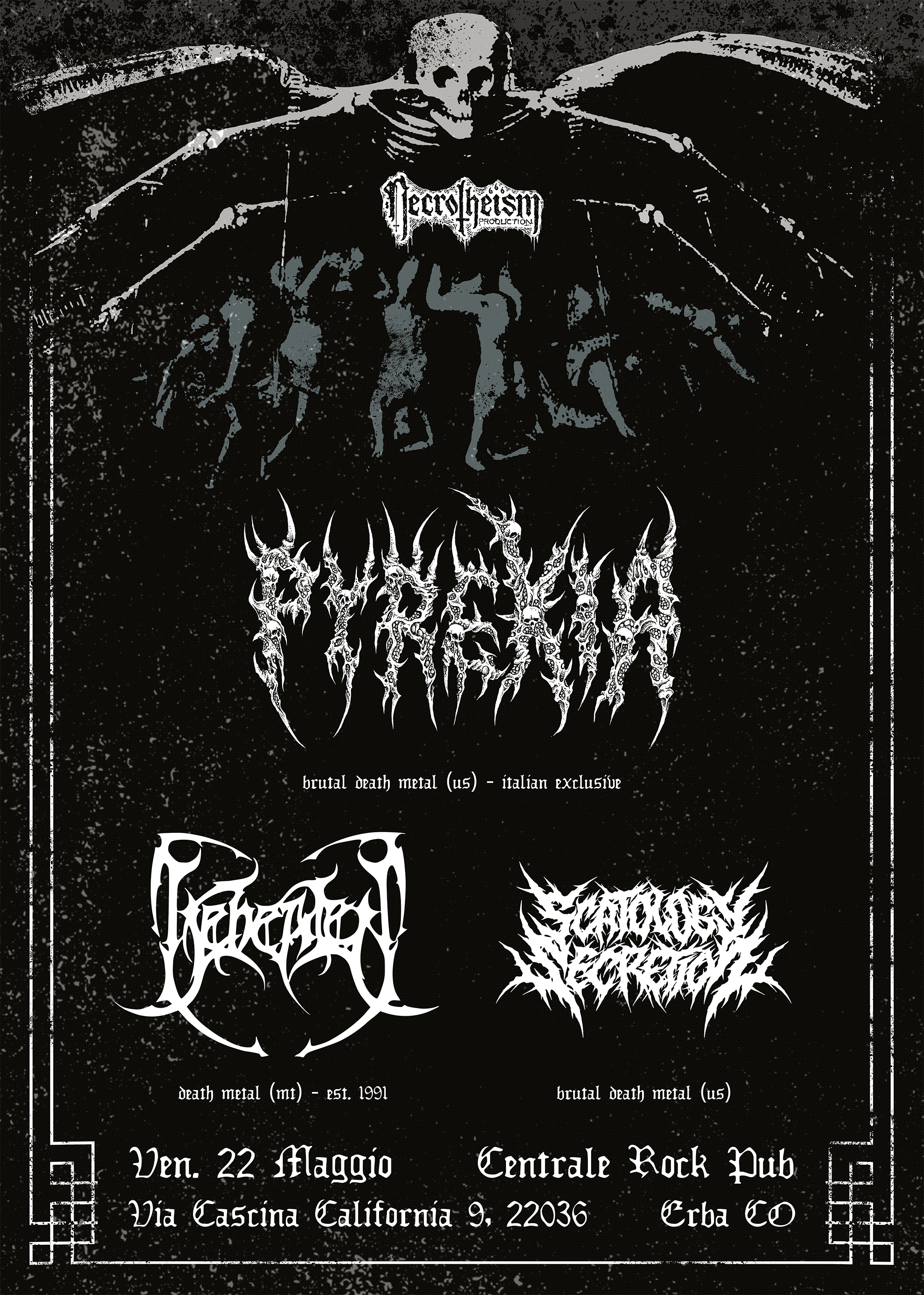 PYREXIA (US – esclusiva italiana) + BEHEADED (MT) + SCATOLOGY SECRETION (INT)