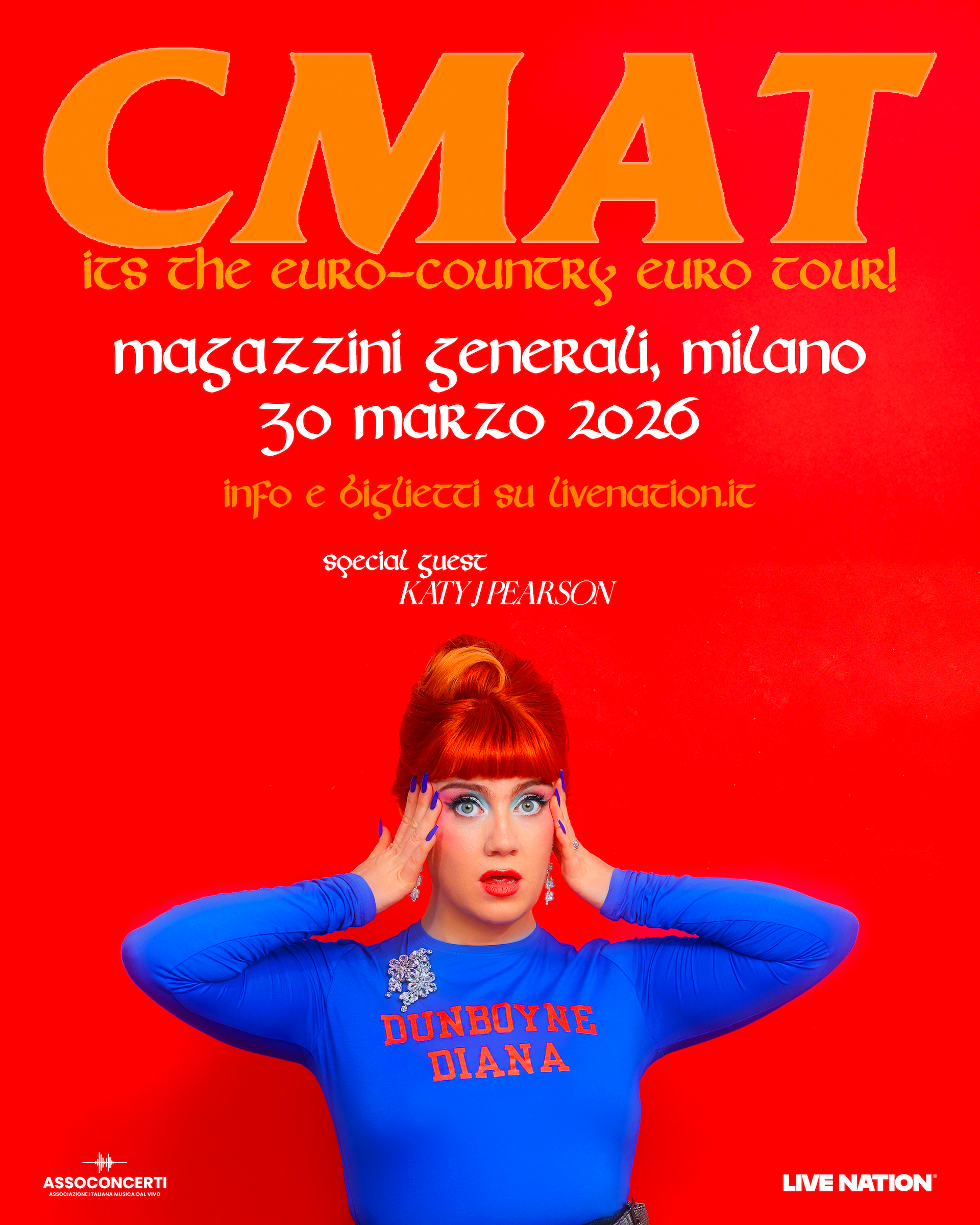 La seconda parte del suo UK EURO-COUNTRY Tour è iniziata con una residency di tre date al Glasgow Barrowlands, seguita da due concerti all’Edinburgh Corn Exchange. Nei prossimi mesi CMAT salirà anche sul palco del Coachella e di numerosi altri festival internazionali, proseguendo poi il tour nel corso dell’anno come special guest di Florence and The Machine.