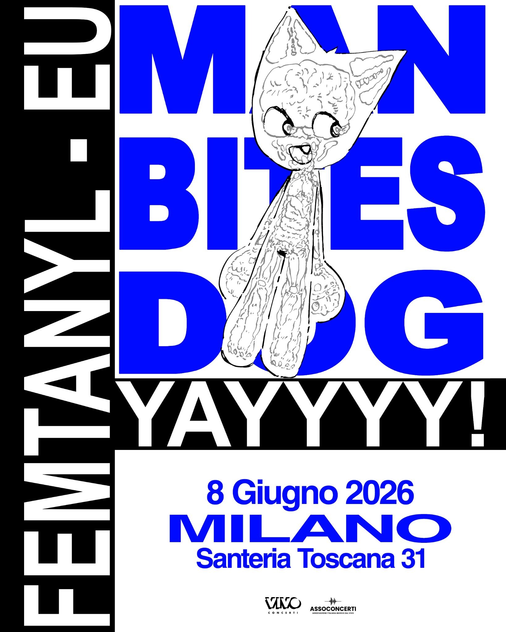 Dopo aver annunciato un tour di 19 date negli Stati Uniti e il debutto al Primavera Sound di Barcellona il duo femtanyl è pronto a portare la propria energia anche in Italia, con un appuntamento che si preannuncia essere un’occasione perfetta per ascoltare dal vivo l’album MAN BITES DOG, uscito il 13 febbraio 2026.