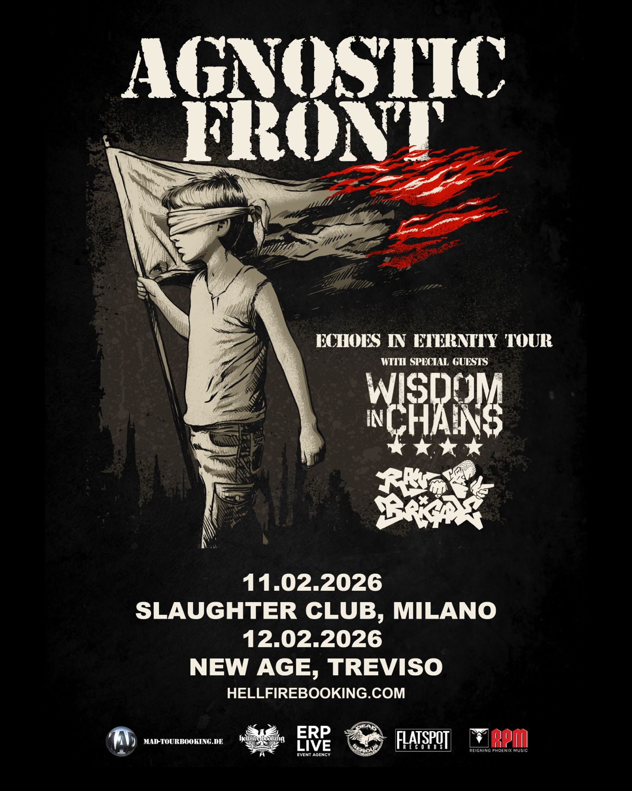 Gli Agnostic Front, accompagnati da Wisdom in Chains e Raw Brigade, piomberanno in Italia per due date di puro fuoco. Aspettatevi un incendio nel pit!