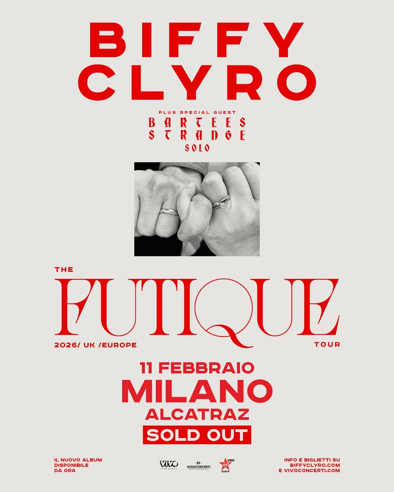 I Biffy Clyro, una tra le band rock più influenti del Regno Unito, annunciano il SOLD OUT della data in Italia, prodotta da Vivo Concerti e prevista mercoledì 11 febbraio 2026 all’Alcatraz di Milano. Sarà l’unica tappa italiana in occasione del loro tour nel Regno Unito e in Europa, THE FUTIQUE TOUR, che li riporta nel cuore del loro pubblico italiano.
