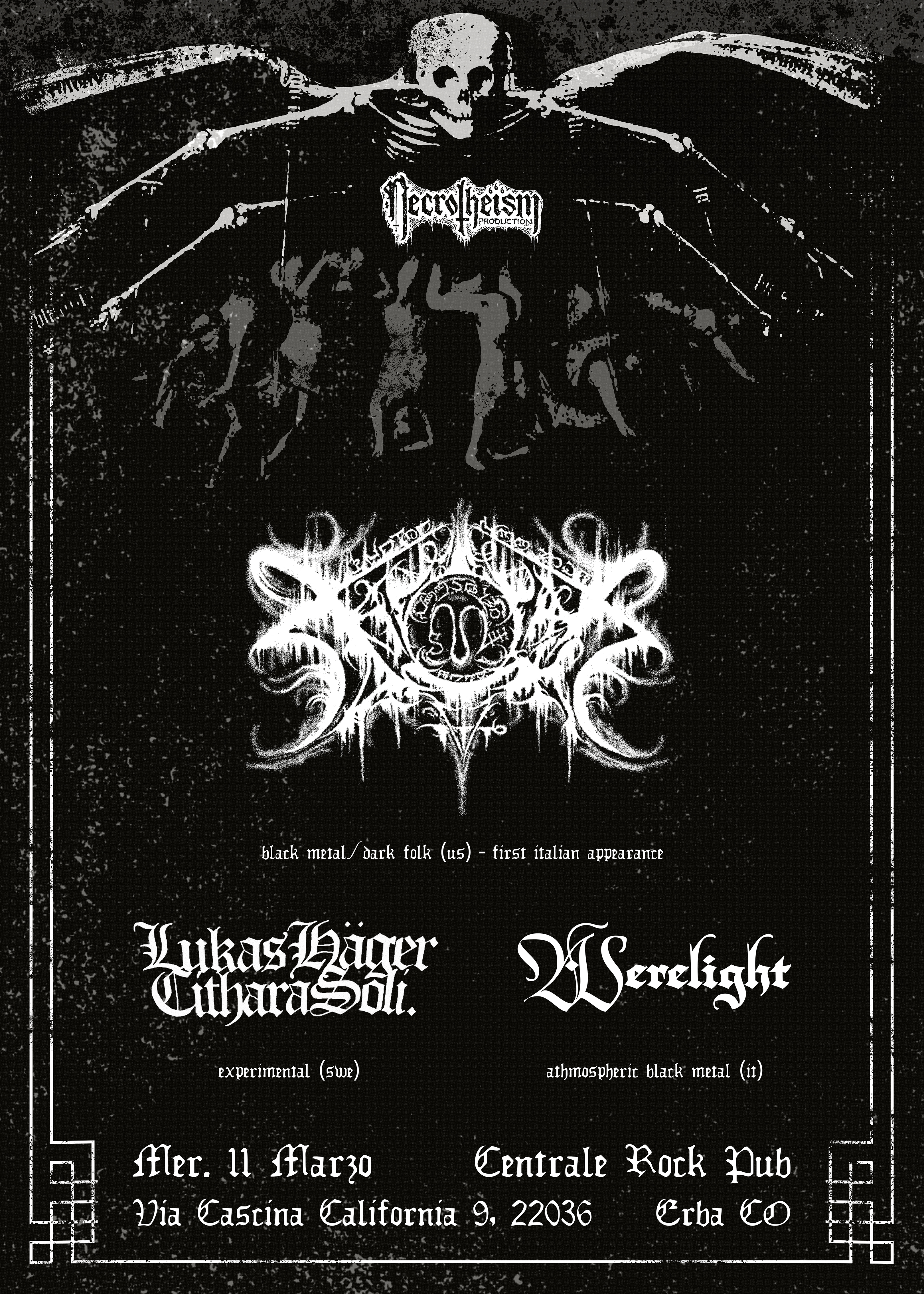 Necrotheism Prod. è orgogliosa di annunciare la prima e unica apparizione italiana di sempre di Xasthur, istituzione della musica depressiva dalla California. La creatura di Scott Conner (anche in Sunn O))), per un periodo), attiva dal 1995, negli ultimi trent’anni ha lasciato un’impronta indelebile sul black metal statunitense, spingendosi nel tempo anche verso traiettorie più acustiche e folk/neo-folk.