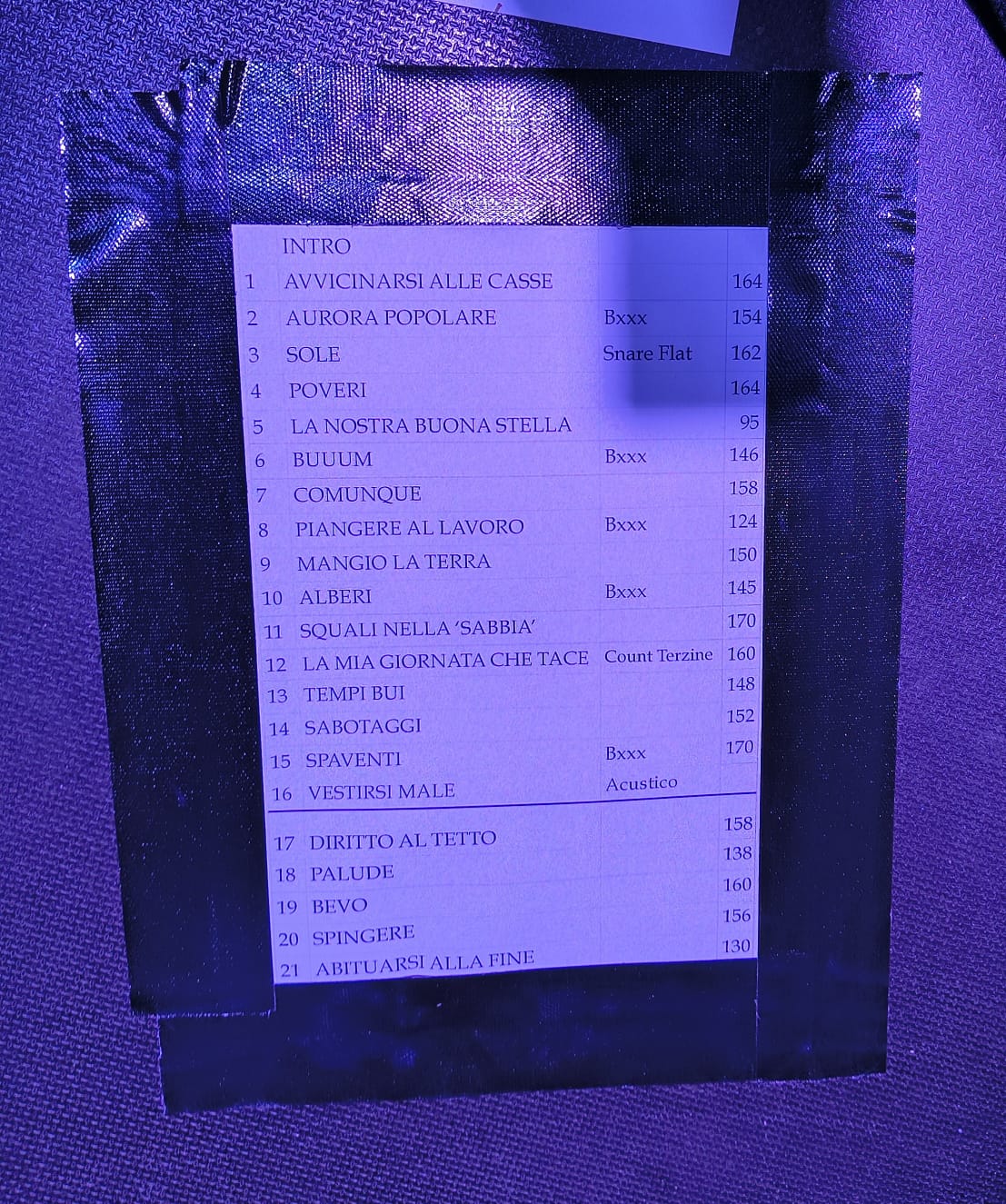 È quello che si manifesta soprattutto in brani come “Tempi bui”, con le sue tragiche constatazioni sul presente, eppure col ritornello più partecipato tra quelli della serata. Il brano fa da congiunzione tra le stagionate “La mia giornata che tace” e “Sabotaggi”.