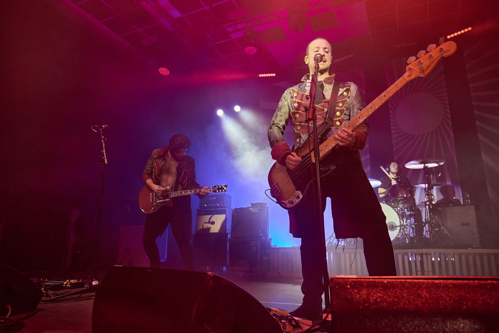 Corazzati nelle loro caratteristiche redingote con alamari e nappine, Davide “Divi” Auteliano (voce e basso), Federico Dragogna (basso e cori) e Michele Esposito (batteria), coadiuvati sul palco da Marco Ulcigrai (chitarra e cori) incalzano, ricambiati dall’entusiasmo di un pubblico che salterà e ballerà per tutte le due ore del concerto.