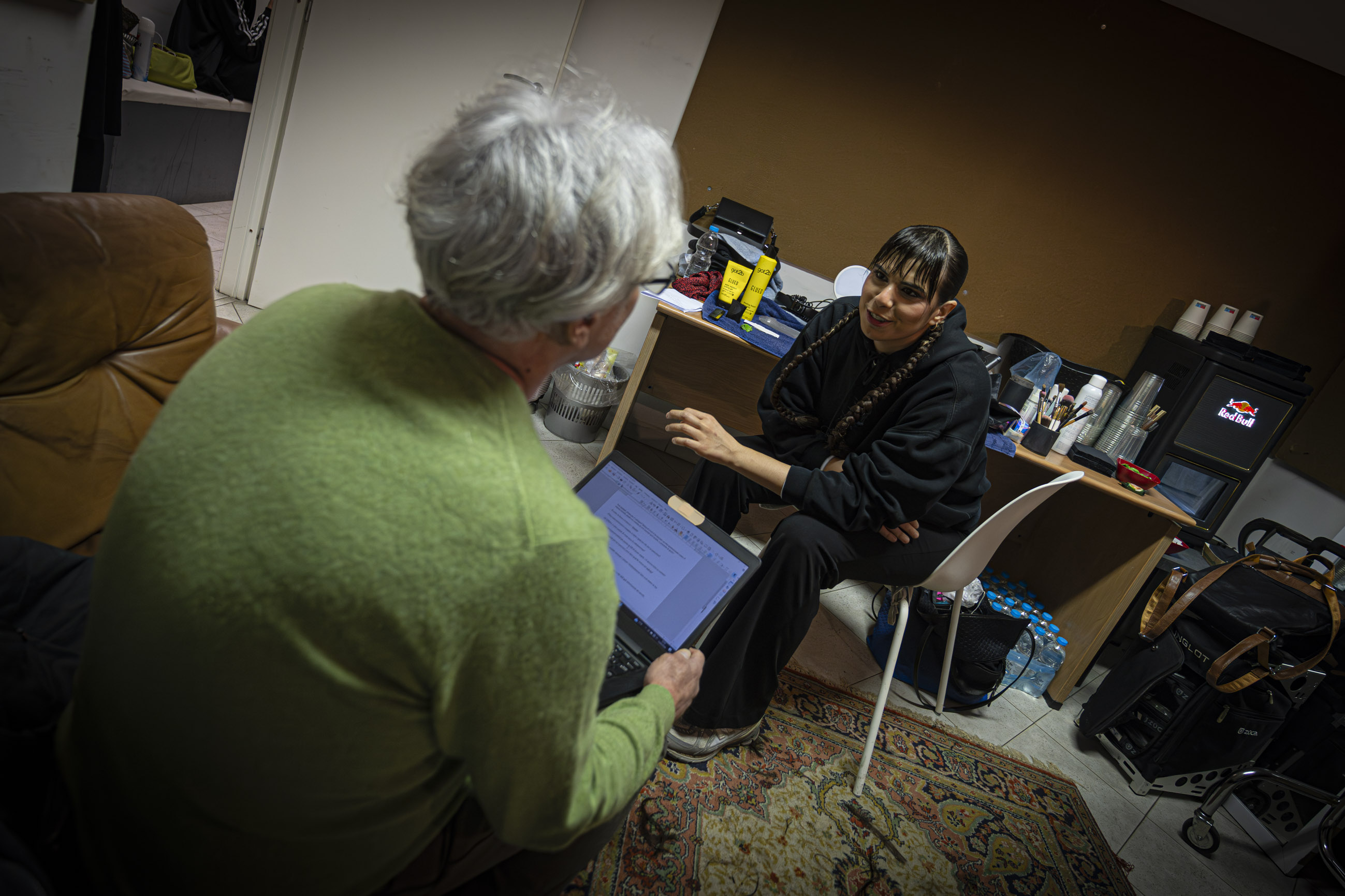 Veniamo accolti da Sarafine nella sala del live, alla fine delle prove romane che seguono lo stancante show della sera prima a Milano. Dopo aver percorso i meandri del locale, tra le tensioni del pre-concerto, rilassamento tra il buffet, make-up e prova costumi, atterriamo nel suo camerino, dopo aver purtroppo sloggiato Le Edera, il corpo di ballo super ispirato di Serafine, motore di tante immagini corporee.