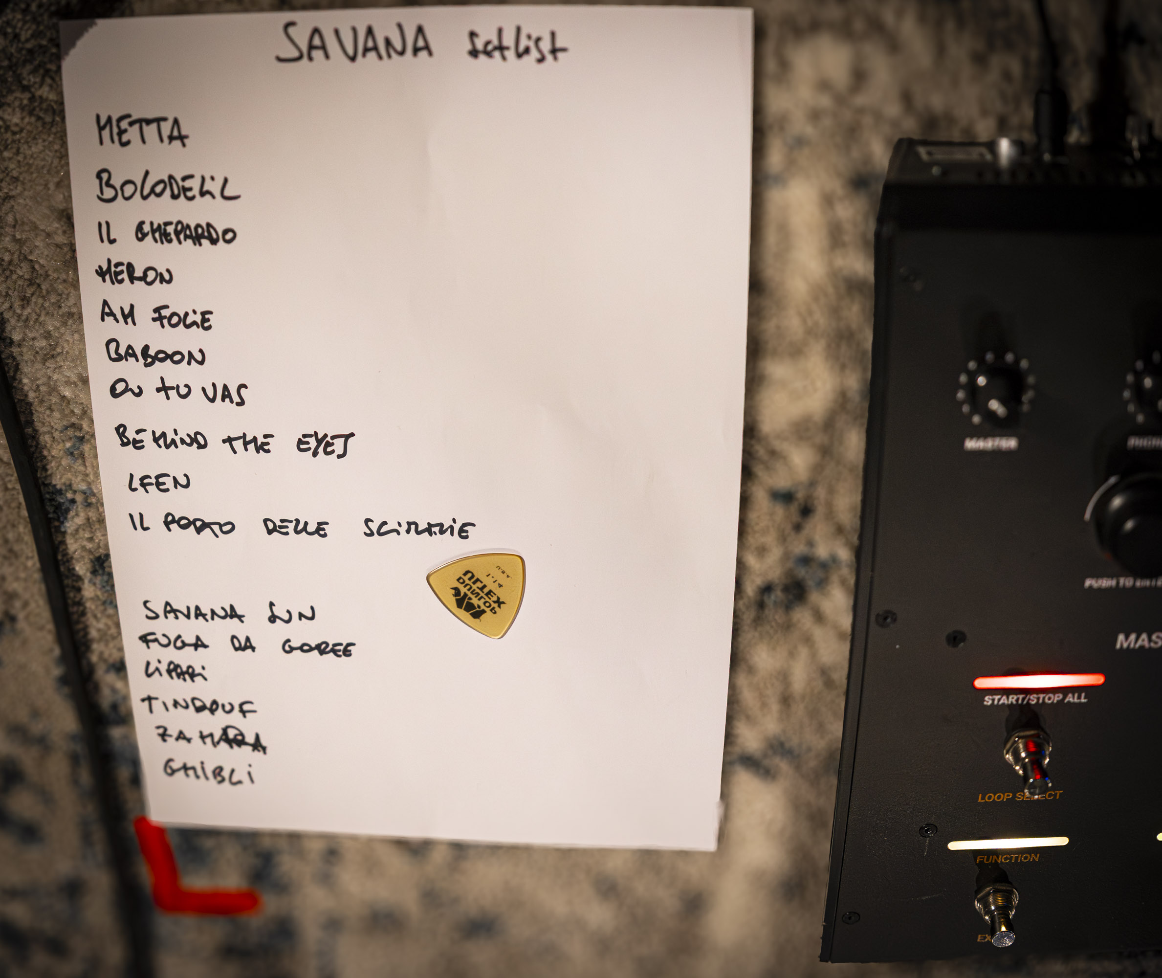I Savana sbucano sul palco saltellando, come a trovare quella carica emotiva e agonistica dei grandi appuntamenti e, mentre Aldo Betto e Blake Franchetto, chitarra e basso, sono ancora ai rapidi saluti al pubblico, Youssef Bouazza si siede e parte subito con il pattern rimico ipnotico di "Metta", primo brano dell’ultimo album. Una canzone per scaldare le mani dei musicisti e il pubblico, che senz’altro ha ascoltato la nuova release e accoglie con grandi applausi il brano: un'intro trasognante e d’atmosfera, un mind set per sintonizzare i presenti con quello che sarà più avanti.