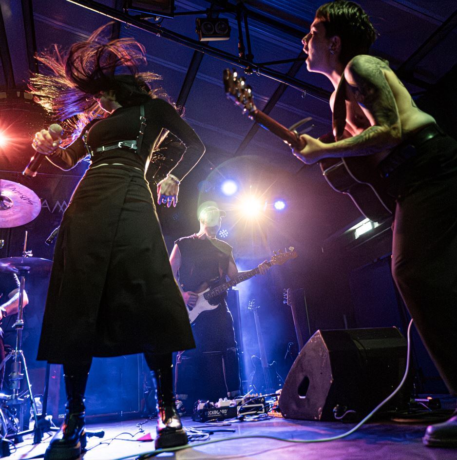 Ad aprire la serata è il progetto Le cose importanti, formazione che si muove tra grunge e post-punk con un impianto sonoro teso e diretto. Sul palco Ylenia alla chitarra, Alfonso al basso, Massimiliano alla batteria e Giada alla voce costruiscono un set compatto, privo di concessioni decorative. Con i singoli pubblicati e con il disco Veleno mettono in scena un’esposizione personale che diventa materia condivisa. I testi affrontano depressione, disforia di genere, senso di alienazione e inadeguatezza, pensieri intrusivi che attraversano la quotidianità.