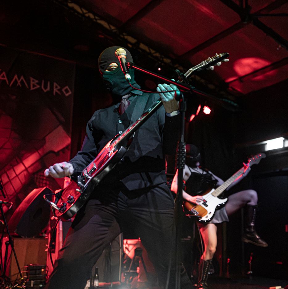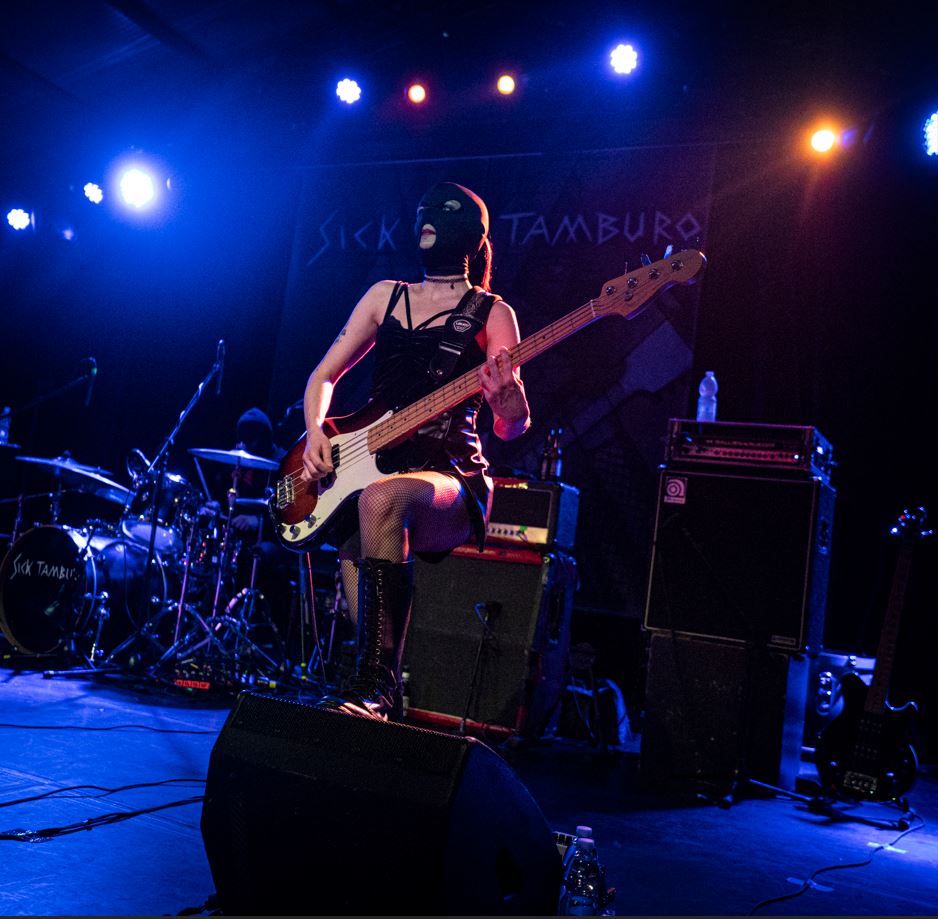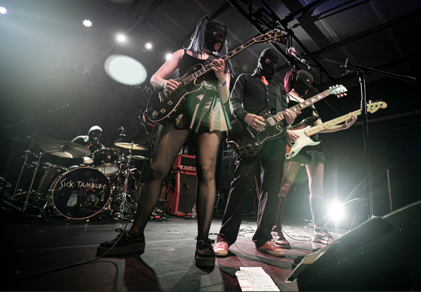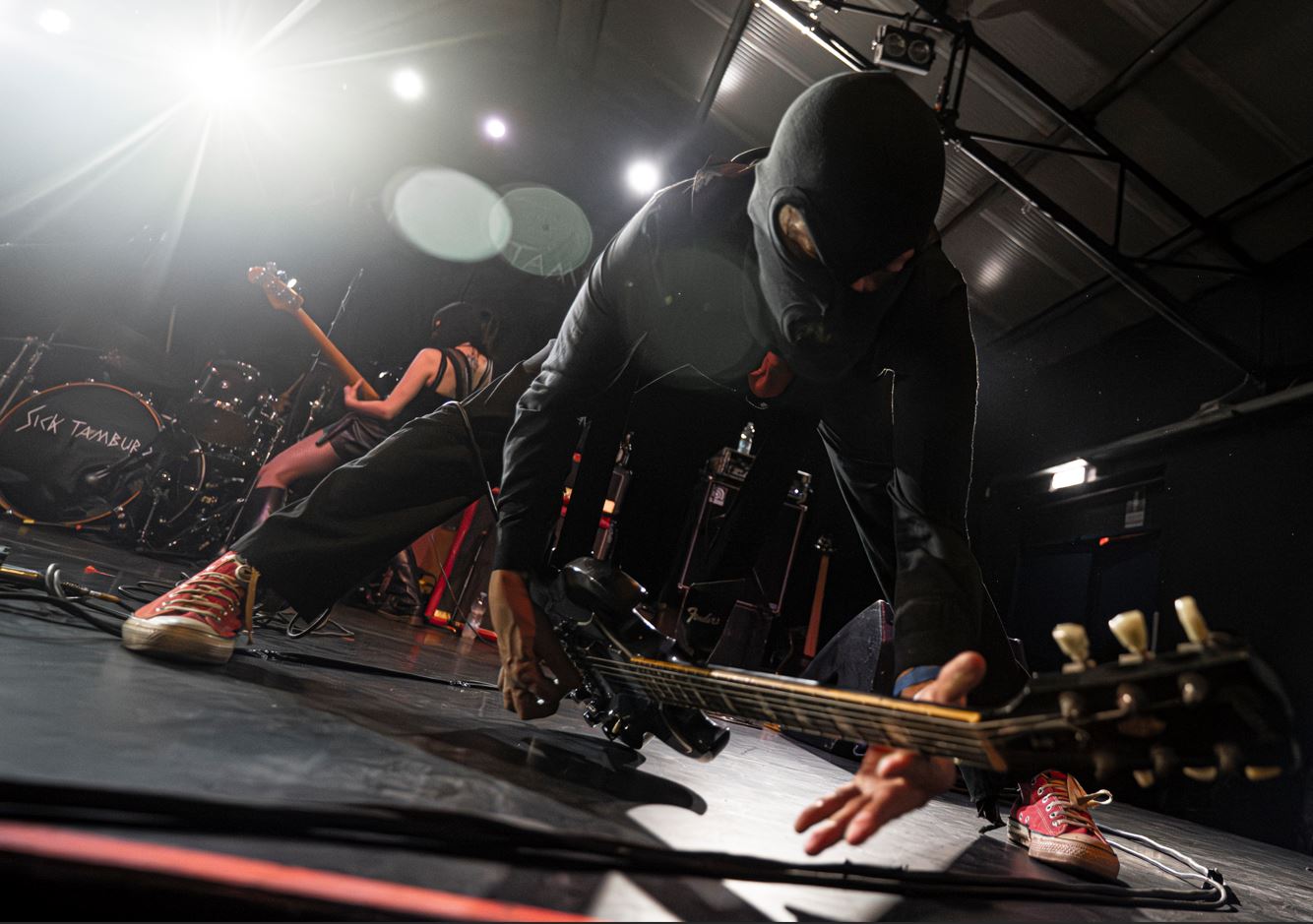Nell’oscurità di un armadio quattro passamontagna neri erano rimasti fermi, piegati in fondo a un cassetto, compressi tra stoffa e silenzio. Non erano scomparsi, erano in attesa. Nella fredda e piovosa serata di giovedì 19 febbraio, sul palco di Largo Venue, Gian Maria Accusani, Carlo Bonazza, Alice Chiara ed Elettra Pizzale tornano a indossarli. Si riattiva una liturgia estetica riconoscibile, dichiarazione visiva prima ancora che scelta formale. Sono tornati i Sick Tamburo.