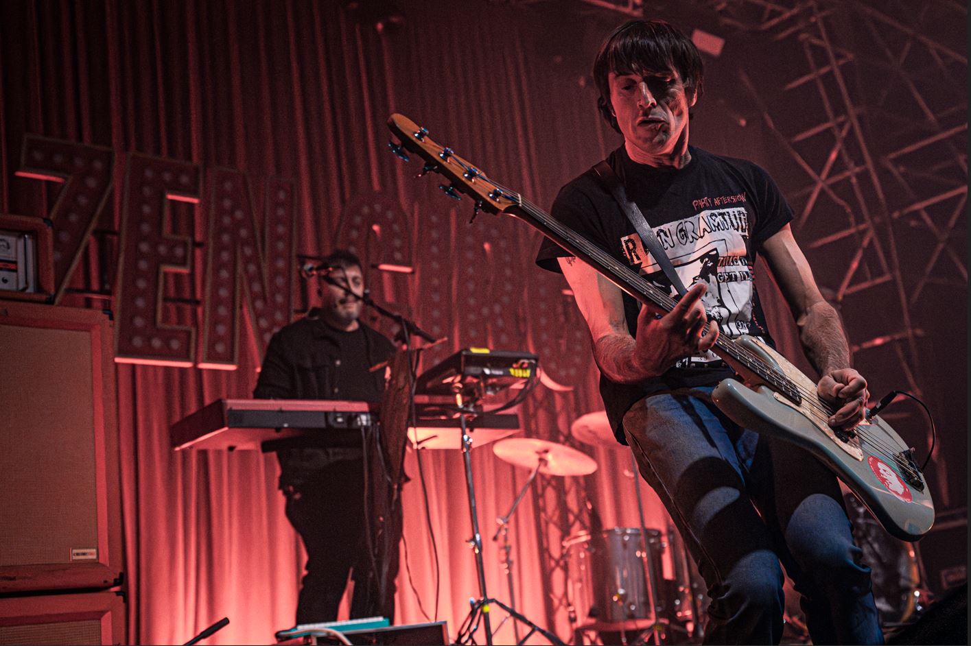Si fa comunque di nuovo buio in sala e dopo pochi minuti una sequenza di note inquietanti annuncia l’imminente arrivo degli Zen Circus. Si tratta dell’ “Imperial March” di Star Wars. I palloncini spariscono all’istante. Se si voleva trasmettere l’idea del Male in musica, non c’è niente di meglio: dalla Generazione X in giù, tutti afferrano al volo. Solo che sul palco non appare Darth Vader, ma il terzetto di Pisa, che dal vivo è un quintetto. Le note finali della Marcia scemano e si fondono con l’attacco del primo brano, che (coincidenza!) è proprio “Il Male”.