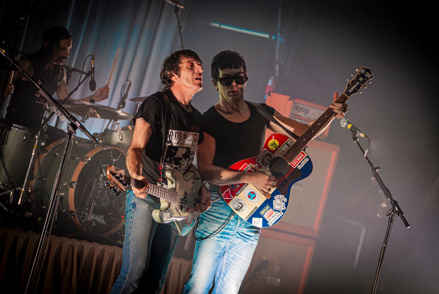 Con “Ragazzo eroe” la band passa poi al momento busker. Appare una melodica e un washboard e si suona così, come per strada. Ed è solo l’inizio, visto che proprio questo è il momento scelto per una gara di crowdsurfing su canotto tra Appino e Pellegrini. I due canotti vengono appaiati sopra le teste del pubblico a metà sala, e poi lanciati in una folle corsa verso il palco. Il pubblico partecipa e ride a crepapelle. Shirley Manson, fatti da parte, qui non è roba per te!
