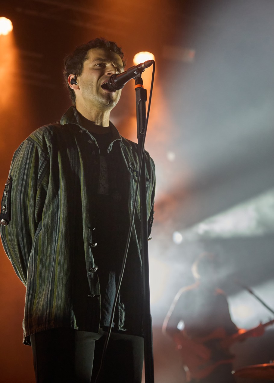 C’è un contrasto quasi violento tra la razionalità geometrica dei palazzi dell’EUR e l’umanità disordinata che stasera si accalca davanti all’ingresso. È la seconda data romana e, come la sera precedente, è sold out, a conferma di un rito che la città non vuole smettere di celebrare. Mentre il vento di aprile pulisce il cielo romano, nel parcheggio del locale si consuma il solito rito: sigarette fumate con urgenza nervosa, birre ghiacciate trangugiate per sconfiggere l'afa residua e quel brusio di commenti a mezza voce. È l'attesa di una folla che cerca un'appartenenza o forse solo il piacere della decostruzione, in bilico tra il marmo solenne del quartiere e il beat sintetico che sta per esplodere oltre le porte.
